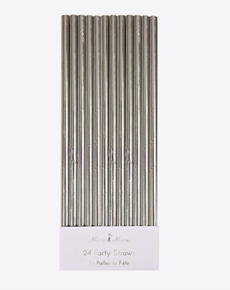 Set van 24 papieren rietjes. Afgewerkt met een zilveren folie.